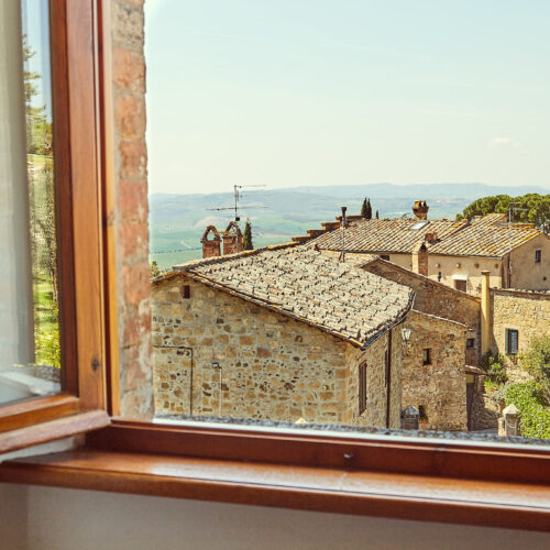 The residence, built around 1890, enjoys a privileged position within the walls of the historic center of Monticchiello. To get there you have to take a suggestive stone climb, because our B&B is at the highest point of the medieval village.