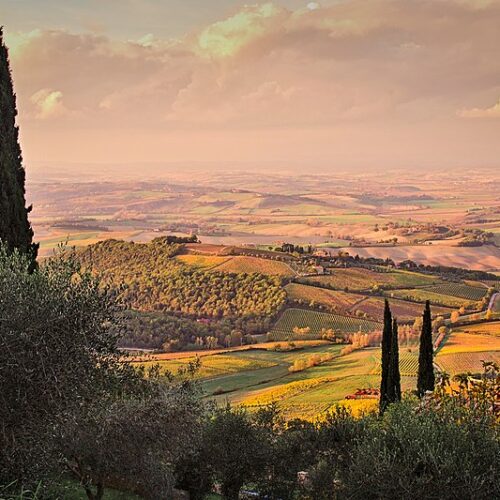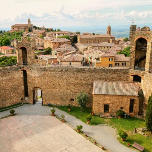 An important example of pentagonal military architecture, the Fortress of Montalcino was built in 1361 by Mino Foresi and Domenico di Feo, partly reusing previous 13th-century structures, incorporating the keep of S. Martino, the S. Giovanni tower. The appearance is the classic one of a pentagonal castle with towers at all angles. The south-east tower is flanked by the keep. . Always a strategic and powerful ally of Siena in struggle with Florence, the castle was destroyed, occupied and rebuilt several times through centuries of bloody battles.