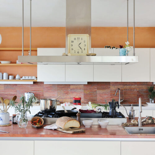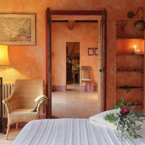 The main villa has five bedrooms and four bathrooms and can accommodate up to 12 people. The décor harmoniously blends contemporary art and travel memories. The natural walls were selected with a Feng Shui master, who chose the garden and the fountains to enhance the harmony of the place and bring peace and luck to its inhabitants. One of the most beautiful areas in the summer is the porch, ideal for alfresco dining, with a king size sofa for reading and relaxing, looking at the rolling hills..