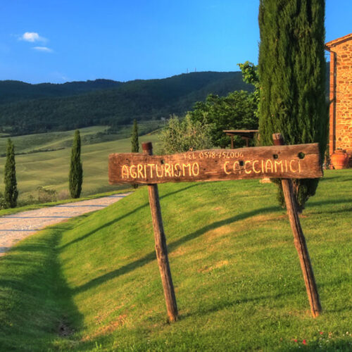 Podere Cacciamici si trova in una delle zone più belle, ma nello stesso tempo meno note della Val d’Orcia. Situato tra i comuni di Sarteano e Pienza, a Podere Cacciamici potrete godere della vista della rocca di Radicofani.Nelle campagne circostanti sarà possibile osservare greggi di pecore al pascolo o animali selvaggi (cinghiali, caprioli, lepri) in un ambiente incontaminato e rilassante. Podere Cacciamici fa parte dell’Azienda Agricola San Piero in Campo. Qui i nostri ospiti potranno scoprire le varie attività svolte durante l’anno come la vendemmia, la raccolta delle olive, la semina e raccolta dei cereali e naturalmente l’ allevamento di bestiame di razza Chianina!